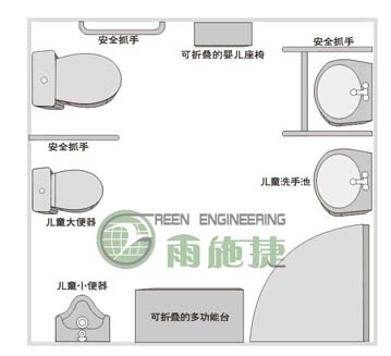 3、內(nèi)部設(shè)施應(yīng)包括成人坐便位、兒童坐便位、兒童小便位、成人洗手盆、兒童洗手盆、有嬰兒臺功能的多功能臺、兒童安全座椅、安全抓桿、掛衣鉤和呼叫器。